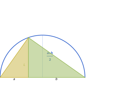 The yellow and green triangles are similar, so =. Therefore =ab, , and the figure shows that .