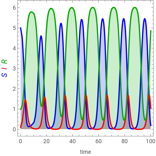 This Demonstration solves a system of three differential equations with time delays, corresponding to a Kermack–McKendrick epidemic model.