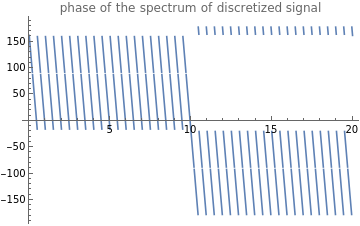 Plot[Arg[X_d[f]]/Degree,{f,0,2g_f},PlotRangeFull,PlotLabel"phase of the spectrum of discretized signal"]