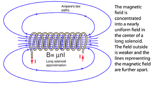 If you then loop that wire around, you can direct the magnetic field lines in an axial direction: