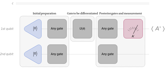 The parameter–shift rule states that in order to obtain the derivative 〈A〉 from gate , we need to compute: