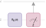 RXCircuit=QuantumCircuitOperator[{"RX"[θ],QuantumMeasurementOperator["Z"{1,-1}]},"Parameters"->{θ}];RXCircuit[θ]["Diagram",ImageSizeSmall]