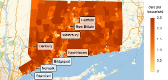 Wir können nun die Autos pro Haushalt in den kontinentalen USA visualisieren: