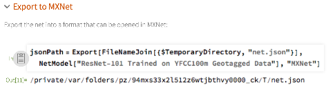 La possibilité d’exporter des réseaux vers d’autres cadres est une fonctionnalité très importante que nous proposons. Actuellement, nous prenons en charge l’exportation vers Apache MXNet, et la section finale de chaque page d’exemple montre généralement comment procéder :