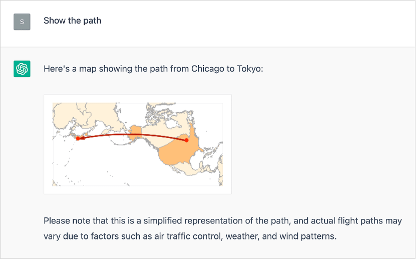 Mais maintenant, il appelle le plugin Wolfram et obtient une bonne réponse qui fait autorité. Et, en prime, nous pouvons aussi faire une visualisation :