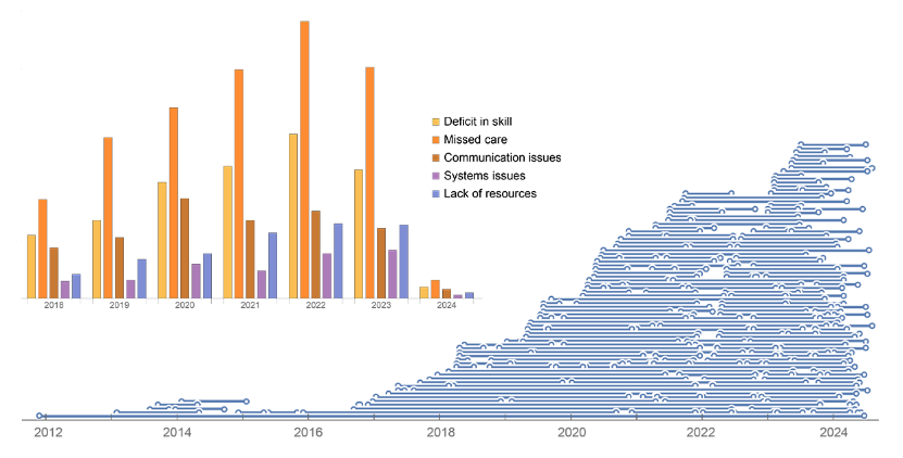 (* To keep things simple, I'm only collecting pfd reports of a certain type *) pfdReportTypes= "hospital-death-clinical-procedures-and-medical-management-related-deaths", "alcohol-drug-and-medication-related-deaths", "care-home-health-related-deaths", "community-health-care-and-emergency-services-related-deaths", "emergency-services-related-deaths-2019-onwards", "mental-health-related-deaths";getPFDList[start_, end_] := Block[{htmlDocs, individualPageLinks, individualPages}, htmlDocs = Table[Import[URLBuild[<| "Scheme" -> "https", "Domain" -> "www.judiciary.uk", "Path" -> {"page", ToString[i]}, (* Iterate through the pages *) "Query" -> "pfd_report_type" -> #, (* Cycle throught just the report types we want *) "post_type" -> "pfd", "order" -> "desc" , "Fragment" -> None |>], "Text"]& /@ pfdReportTypes, {i, start, end}]; (* Now that we've got a list of the results pages, we need to grab each individual report's page *) individualPageLinks = Flatten[StringCases[#, "<a class=\"card__link\" href=\"" ~~ Shortest[url___] ~~ "\"" :> url]& /@ htmlDocs]; individualPageLinks = DeleteDuplicates[individualPageLinks]; (* The searches may have had overlapping results, which should be removed *) (* Each of these pages contains a link to a PDF file with the reports we want *) individualPages = Import[#, "Text"]& /@ individualPageLinks; First[StringCases[#, "related-content__link\" href=\"" ~~ Shortest[url___] ~~ "\"" :> url] ]& /@ individualPages ]