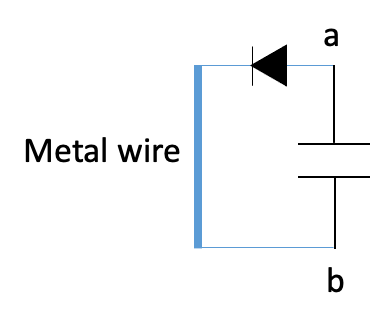 True or False. Electrons in a wire are in perpetual random thermal motion. These fluctuations will result in a potential difference which will charge the capacitor. The diode prevents the capacitor from discharging. The power available will of course be low.
