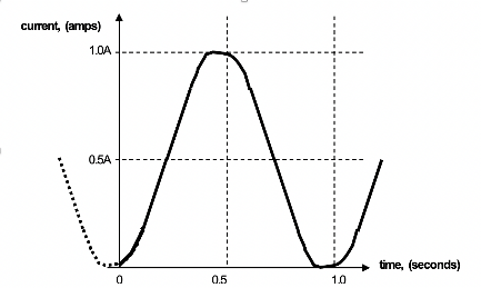 It is immaterial that the waveform is a current rather than a voltage. The waveform could be anything. The waveform is 0.5*(1-cos(2π 1 t)). Check that it is.