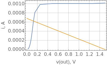 The output voltage is the intersection of the I-V curve of the two components that control net out. The intersection can be determined graphically.