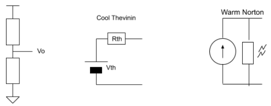 A voltage divider is made of two 1Ω resistors. Two black boxes are now made, one of which contains the Thevinin equivalent of the voltage divider, the other contains the Norton equivalent of the voltage divider. How would you correctly identify the content of the black-boxes? (This is a problem I have heard of; but I don't have a proper citation.)