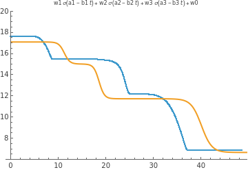 params={w0,w1,w2,w3,a1,a2,a3,b1,b2,b3};model=w0+{w1,w2,w3}.LogisticSigmoid[{a1,a2,a3}-{b1,b2,b3}t];