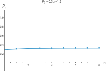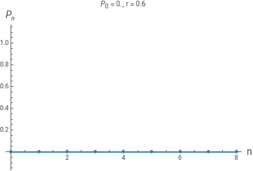 (*Herepnisandpnm1is*)createplot[p0_,r_,timesteps_]:=Module[{},pn[pnm1_]=rpnm1(1-pnm1);populationlist=Partition[Riffle[Range[0,timesteps-1],NestList[pn,p0,timesteps]],2];ListPlot[populationlist,AxesLabel{Style["n",14],Style["",14]},JoinedTrue,MeshAll,PlotLabelStyle[" = "<>ToString[p0]<>", r = "<>ToString[r],16],PlotRangeAll]]createplot[0.2,2,10]