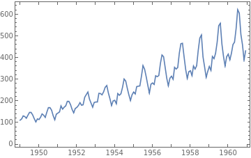 passengers=ExampleData[{"Statistics","InternationalAirlinePassengers"},"TimeSeries"]
