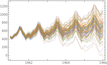 k=5;sim=RandomFunction[tsm,{0,12*k},100];psim=DateListPlot[sim,PlotStyleDirective[Opacity[.25]],JoinedTrue,PlotRangeAll]