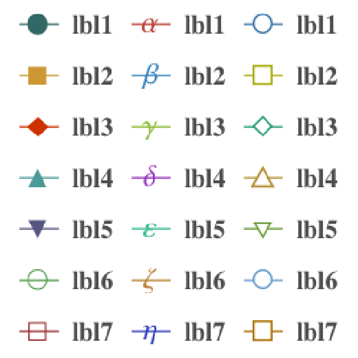 Create curve legends that match a plot in color, thickness, dashing, and marker shape: