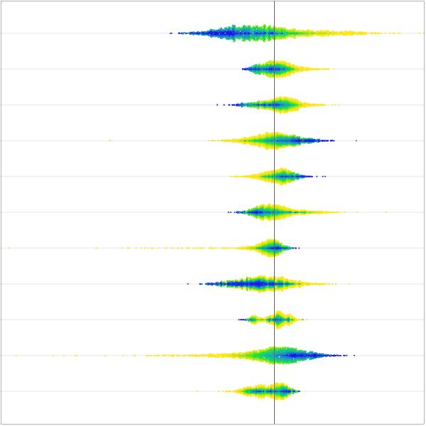 SHAP (SHapley Additive exPlanations) values offer a good insight at how much each feature is contributing to the final prediction. Here we can see each example represented as a collection of points (one for each feature) whose position represents how much they moved the prediction for that specific example away from the average.