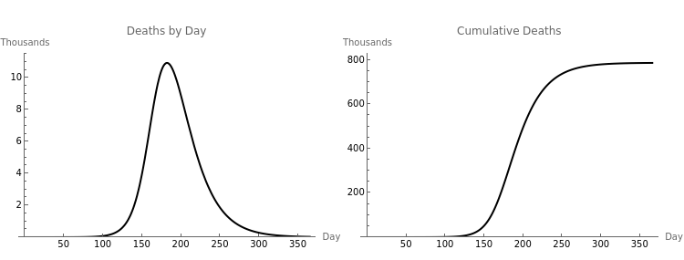 In the graphic above with the red and blue bar you have an abstract look at the seediest side of politics. It is the best interest of every politician to keep uncertainty rising right up until the time you walk into the voting booth. The numbers that change in that graphic are based on a compartmental model of disease transmission, a methodology that has been in use since 1927. Below you see graphs which that model produces. Play with the sliders and you will find there is a lot of variation depending on chosen parameter values, but the curve does flatten. Nature does that, not politicians.