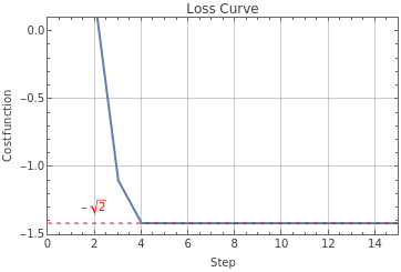 After defining the cost function, we can apply a classical optimizer starting from an initial guess to find the minimum energy value.