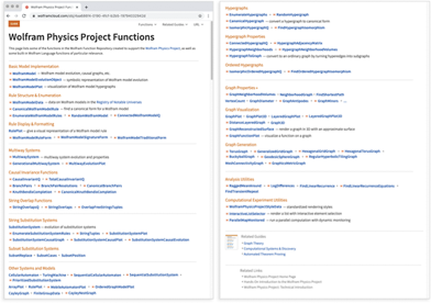 Documentation for Wolfram Physics Project functions is available in the Wolfram Function Repository.