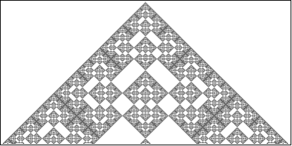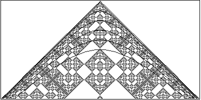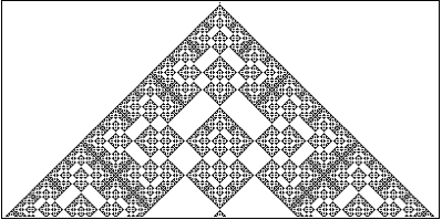 Show[XCAGraphics[XCAEvolveList[Reversible[ElementaryRule[150]],{CenterList[400,{1}],ConstantList[400,0]},198]]];
