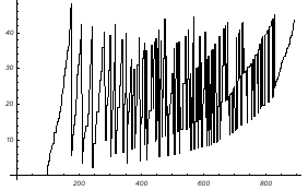 ,PlotJoinedTrue;posxx=Position[FromCAState[CAEvolveList[ElementaryRule[254],CenterList[100,{1}],48]],1];