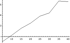 {25, 3.925}, {30, 4.225}, {35, 5.35}, {40, 5.3}}