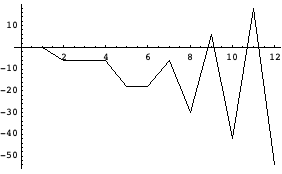{0, -6, -6, -6, -18, -18, -6, -30, 6, -42, 18, -54}