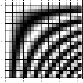ListDensityPlot[Table[Cos[xy/10],{x,0,20},{y,0,20}]];
