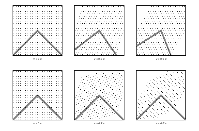 fgridc[p_]=Surround[Graphics[{{{GrayLevel[.5],Thickness[.02],Line[{{-10-10p,-10},{0,0},{10-10p,-10}}]}},Table[Point[{x+tp,t}],{x,-10,10},{t,-10,10}]},AspectRatioAutomatic,PlotRange{{-10,10},{-10,10}}]];