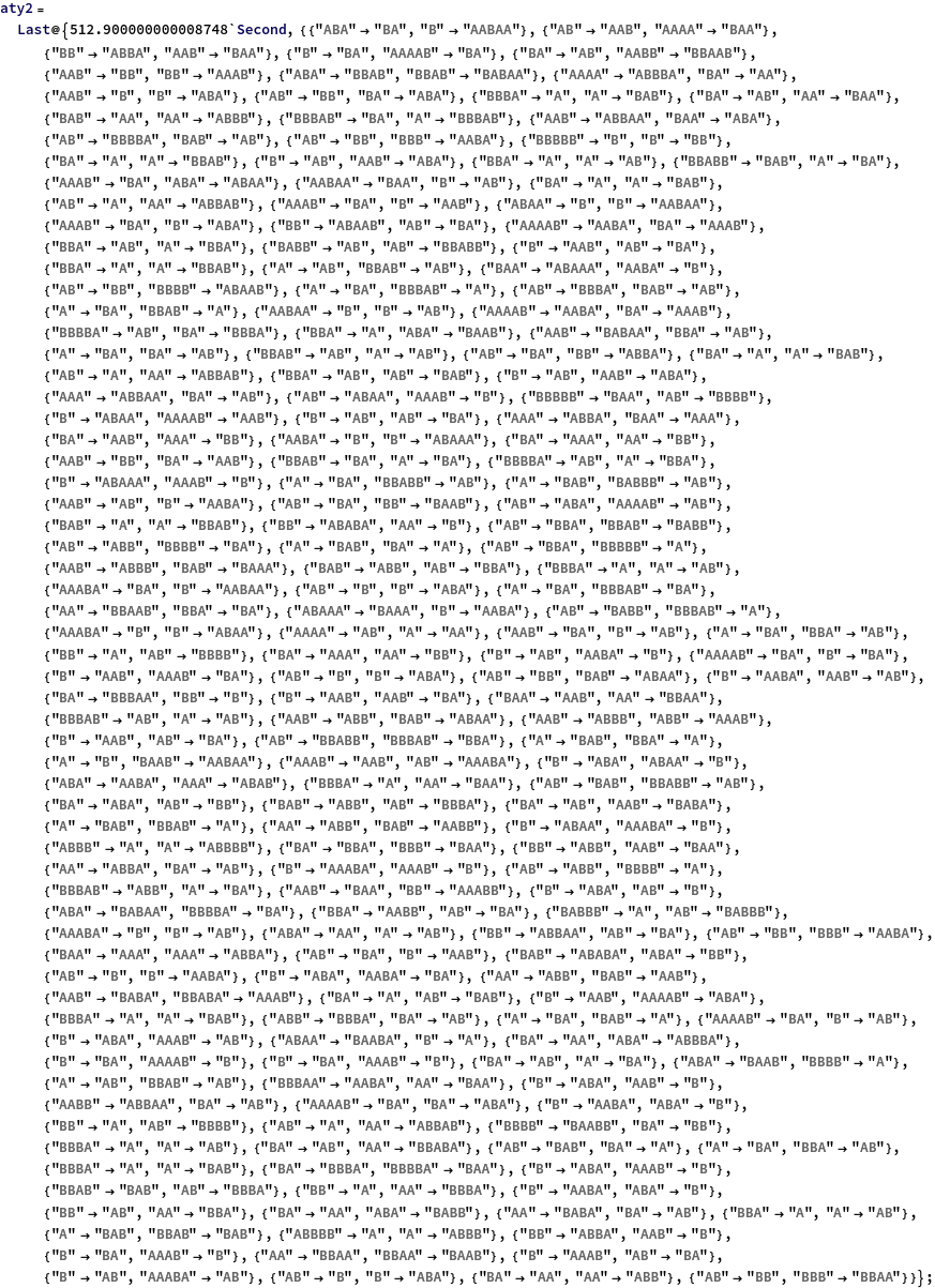 {49.82Second,{{BBBBA,BABBA},{BBABBAB,ABAB},{ABAB,BBABBAB},{BAABBBA,BBA},{BABA,ABA},{BBAABAABB,AABBAAB},{ABA,BAAB},{BABA,ABBBAB},{AABABA,BABA},{ABBA,BABAABBA},{ABBB,BABABAAA},{AAABB,BBAA},{BAA,ABAB},{AABBB,BBAAAB},{AAAABB,BAABA},{BBBA,ABABB},{ABAABB,AAABA},{BBBBA,ABBBA},{BABBA,BBBABAA},{ABBB,BBBBBBAAB},{AAABBB,BAAAA},{AAAABB,BBA},{BBAA,ABBAB},{ABAAB,AAAAAABB},{ABABABAA,BBBABA}}}