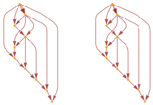 ResourceFunction["WolframModel"][{{x,y,z},{u,x}}{{x,u,v},{z,y},{z,u}},Join[Table[{1,1},4],Table[{1,1,1},2],{{1,2},{1,1,2}}],30,"LayeredCausalGraph"]