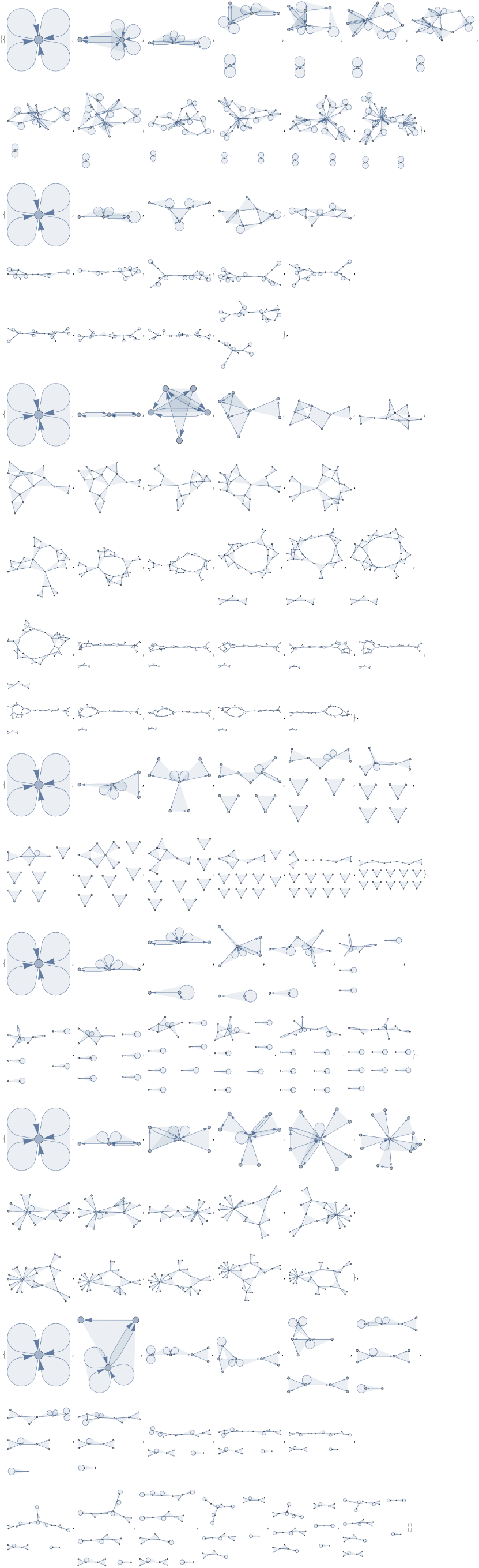 (HypergraphPlot/@WolframModel[#,{{0,0,0},{0,0,0}},30,"StatesList"])&/@{{{1,2,3},{2,4,5}}{{3,5,5},{1,4,6},{2,4,6}},{{1,2,3},{2,4,5}}{{1,6,6},{2,3,6},{4,3,7}},{{1,2,3},{1,4,5}}{{3,6,4},{4,7,2},{2,6,1}},{{1,2,3},{1,4,5}}{{1,3,4},{4,5,6},{2,7,8}},{{1,2,3},{3,4,5}}{{2,2,6},{3,7,4},{1,4,5}},{{1,2,3},{1,4,5}}{{2,6,3},{6,3,4},{5,1,7}},{{1,2,3},{1,4,5}}{{3,3,6},{5,6,7},{2,4,4}}}