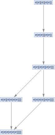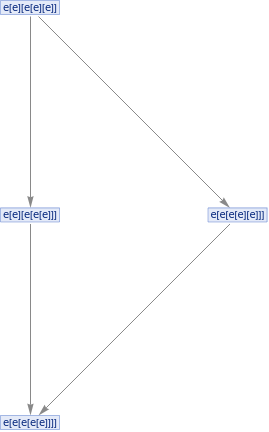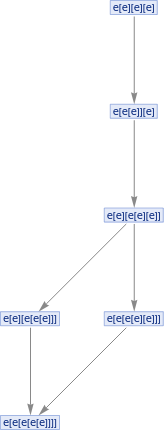 ResourceFunction["MultiwayCombinator"][e[x_][y_]->x[x[y]],#,6,"StatesGraph"]&/@Groupings[Table[e,4],Construct->2]