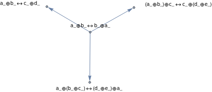 NestGraph[Flatten[{Values[coSubstitutionLemmas[#,x_⊕y_y_⊕x_,"Canonicalize"->True]]}]&,a_⊕b_b_⊕a_,4,GraphLayout->"LayeredDigraphEmbedding",AspectRatio1]