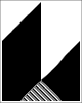 ResourceFunction["InteractiveListSelector"][Table[ArrayPlot[ResourceFunction["BlockCellularAutomaton"][{{2,2}{1,1},{1,1}{2,2},{1,2}{1,2},{2,1}{2,1},{2,0}{0,2},{1,0}{1,0},{0,2}{2,0},{0,1}{0,1},{0,0}{0,0}},CenterArray[IntegerDigits[i,3],40],300],PlotRange->{0,2}]->i,{i,51,150}]]