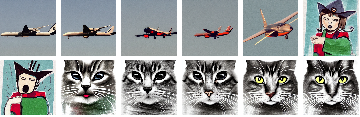With[{other=NetModel[{"CLIP Multi-domain Feature Extractor","InputDomain"->"Text","Architecture"->"ViT-L/14"}]["An airplane",NetPort[{"post_normalize","Output"}]]},GraphicsGrid[Partition[StableDiffusionSynthesize[Table[xcat+(1-x)other->BlockRandom[SeedRandom[15345];RandomVariate[NormalDistribution[],{4,64,64}]],{x,0,1,1/11}]],6]]]