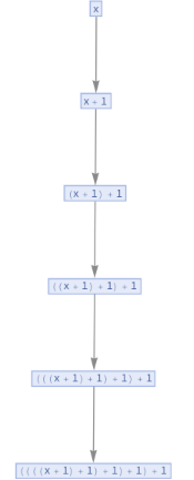 MultiEvaluate[x,5,"Graph","EvaluatePattern"->(_Plus->2)]