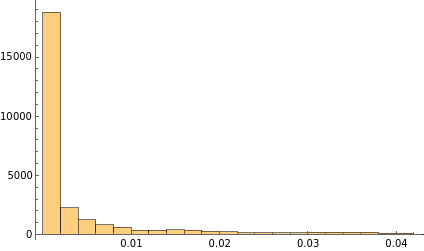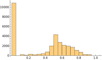 Histogram[Flatten[Reverse[Transpose[With[{u=PDF[SmoothKernelDistribution[#],x]},Table[u,{x,-50,0,.5}]]&/@Transpose[data]]]]]
