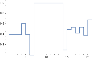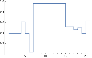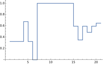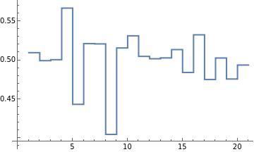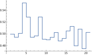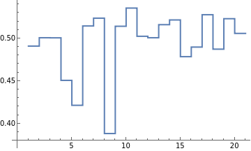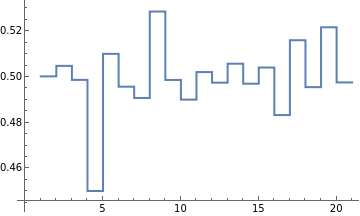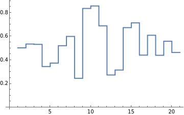 ListStepPlot[Mean[IntegerDigits[#,2,20]&/@Flatten[Position[outs,32768]]]]