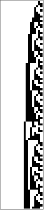 ArrayPlot[IntegerDigits[#,2,20]&/@Take[Sort[Flatten[Position[outs,32768]]],100]]