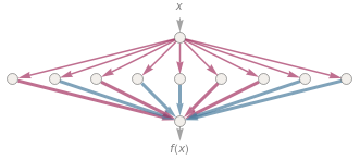 NetGraphPlotRaw[reluNN[data],"AddArrows"->True,Epilog->{Style[{Text[x,{0,2+3/4}],Text[f[x],{0,-2/3}]},Gray]}]