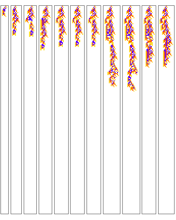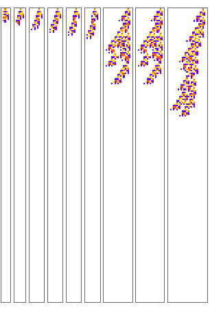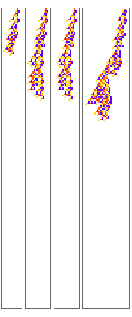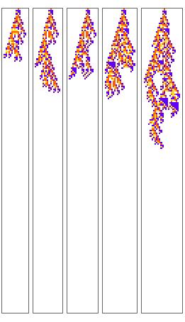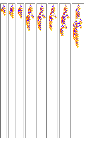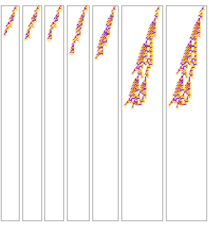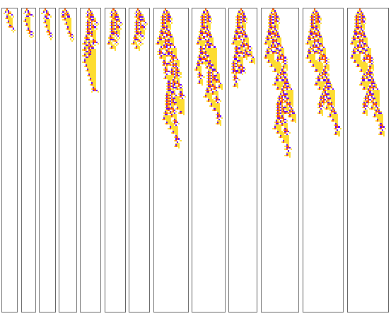 evos=ParallelTable[SeedRandom[121100+i];AdaptCA[Append[promisingevoobjects[[i]],"cas"->{}],500,"PerturbationFunction"->(PerturbCA[#,RandomInteger[{10,40}]->1]&),"NPerturbations"->5],{i,Length[promisingevoobjects]}];