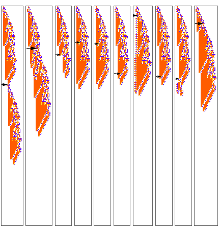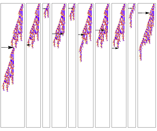 ResourceFunction["InteractiveListSelector"]PlotCA[First[#],"steps"->140,"init"->{{1},0}]->First[#]&/@Select,#[[2]]>100&