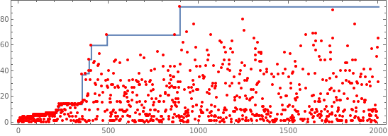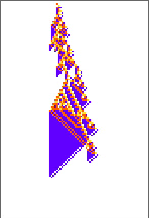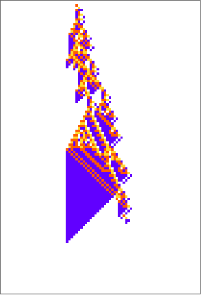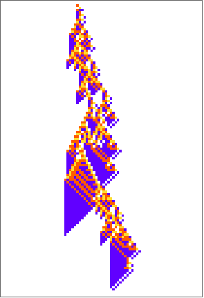 rh=Reap[mh=Module[{ru,ca,lt,lts,pcas,fitness,initru={0,4,1},initfit={0}},SeedRandom[7899623];Sow[{initru,<||>,initfit}];NestList[CompoundExpression[ru=RandomRuleMutation[First[#]],ca=CellularAutomaton[ru,{{1},0},{200,{-200,200}}];lt=TestCALifeTime[ca];If[lt==-Infinity,Sow[{ru,<||>,{lt}}];#,pcas=Table[PerturbedCellularAutomaton[ru,{{1},0},{200,{-200,200}},1],Ceiling[lt/10]];fitness=Min[lts=Join[{lt},TestCALifeTime/@(First/@pcas)]];Sow[{ru,Last/@pcas,lts}];If[fitness>=Last[#],{ru,fitness},#]]]&,{initru,First[initfit]},2000]]][[2,1]];