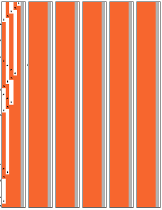 GraphicsRow[OneSidedTuringMachinePlot[#,"Width"->5,"LabelOutput"->False,ImageSize->70,Mesh->False]&/@Partition[OneSidedTuringMachineEvolution[{1955095,3,2},42,300],50]]