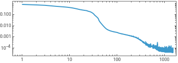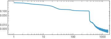 ListLinePlot[First[experimentSin]["RoundLossList"][[;;;;10]],ScalingFunctions->{"Log","Log"},Frame->True,AspectRatio->1/3]
