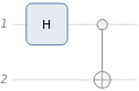 For the quantum Fourier circuit, we have with n the number of qubits. For example, the Fourier circuit of 2-qubits: