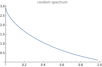 ClearAll["Global`*"];eigMagnitude=InverseCDF[MarchenkoPasturDistribution[.5],y]/.y->1-x;Plot@@{eigMagnitude,{x,0,1},PlotLabel->"random spectrum"}
