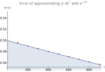 Using exp(-At) to approximate (I-A) math.SE post