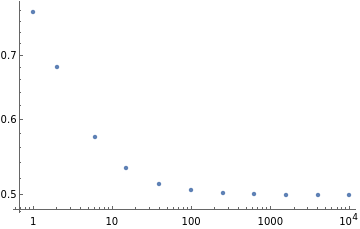 maxT=10000;sf={"Log","Log"};positions=Floor[Exp[#]]&/@Subdivide[Log[1],Log[maxT],10];sgdLosses=Tablet,,{t,N[positions]};observedPlot=ListPlot[sgdLosses,ScalingFunctions->sf];Show[observedPlot]